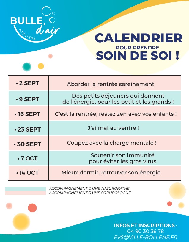 Lundi, mardi, jeudi et vendredi de 13h30 à 14h à l'Espace Générations Bollène