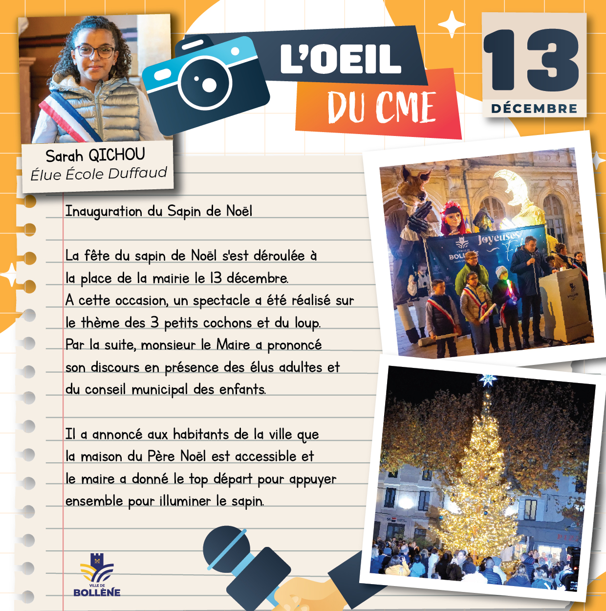 Les élus du Conseil Municipal des Enfants racontent leurs aventures et les événements auxquels ils participent à travers leurs articles, publiés sous le nom « L’œil du CME », une initiative entièrement imaginée et portée par ces jeunes élus.